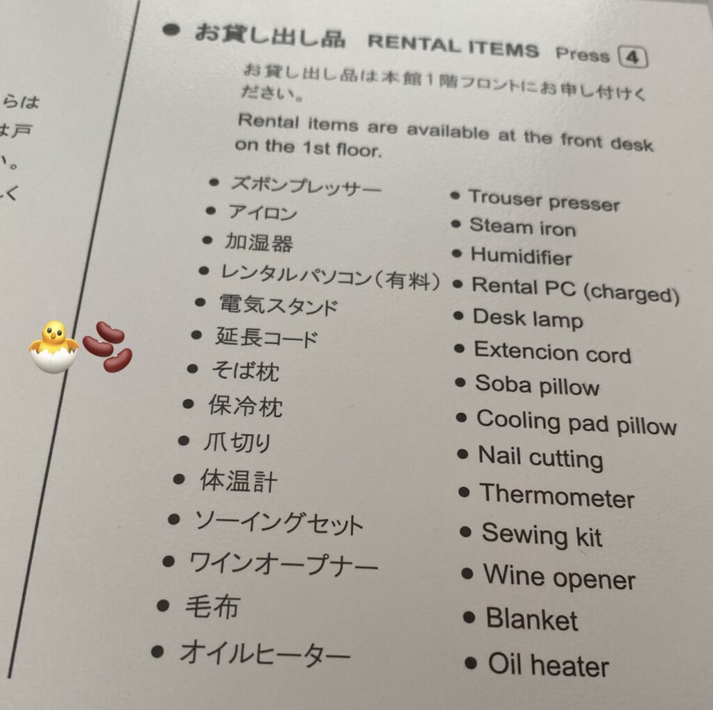 クレンジング、化粧水、乳液等のセット→お部屋にはありませんでした(フロントに頼めばあるのかもしれません)